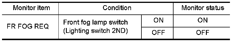 2.With operating the front fog lamp switch, check the monitor status.