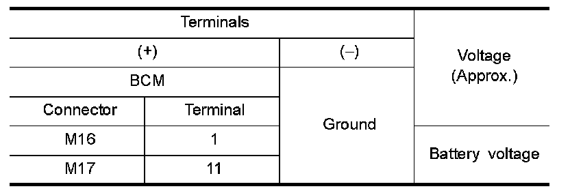 3.Check voltage between BCM harness connector and ground.