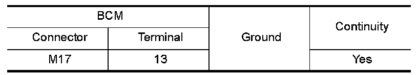 Check continuity between BCM harness connector and ground.