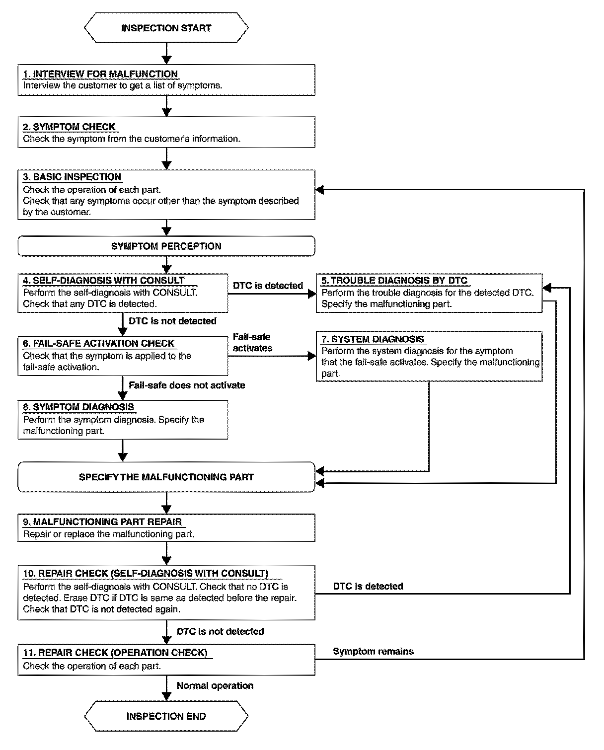 Perform the self-diagnosis with CONSULT. Verify that no DTCs are detected. Erase all DTCs detected prior to the repair. Verify that DTC is not detected again.