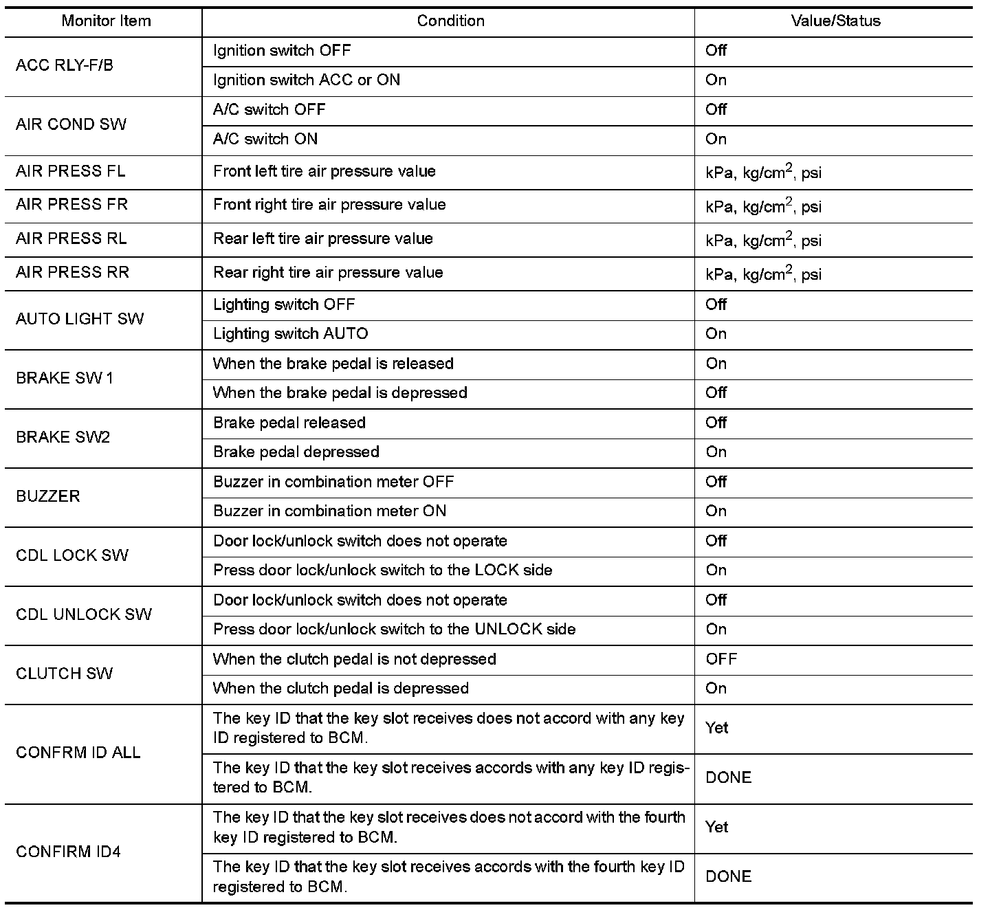 - Display tire pressure reported by the TPMS transmitter