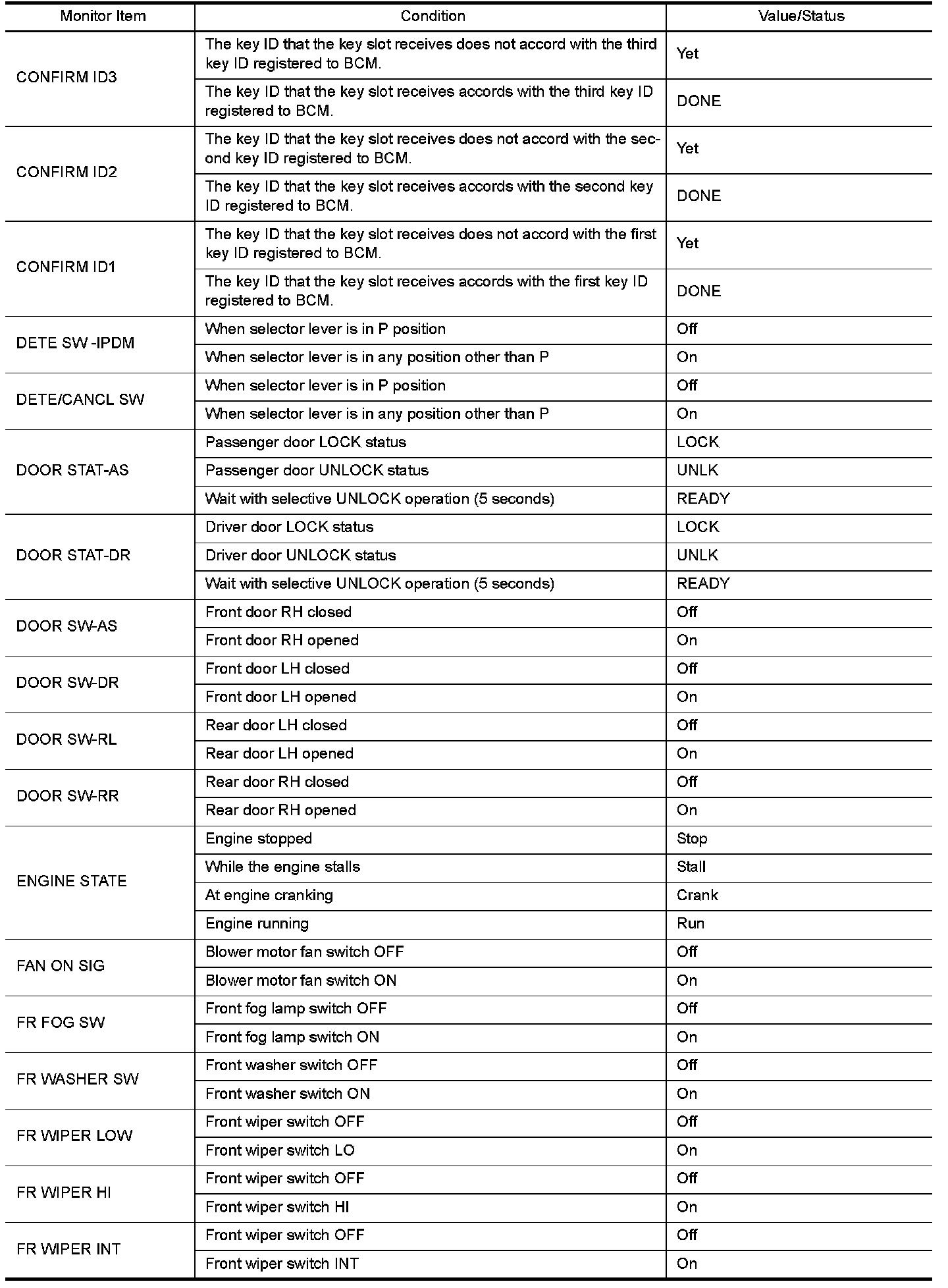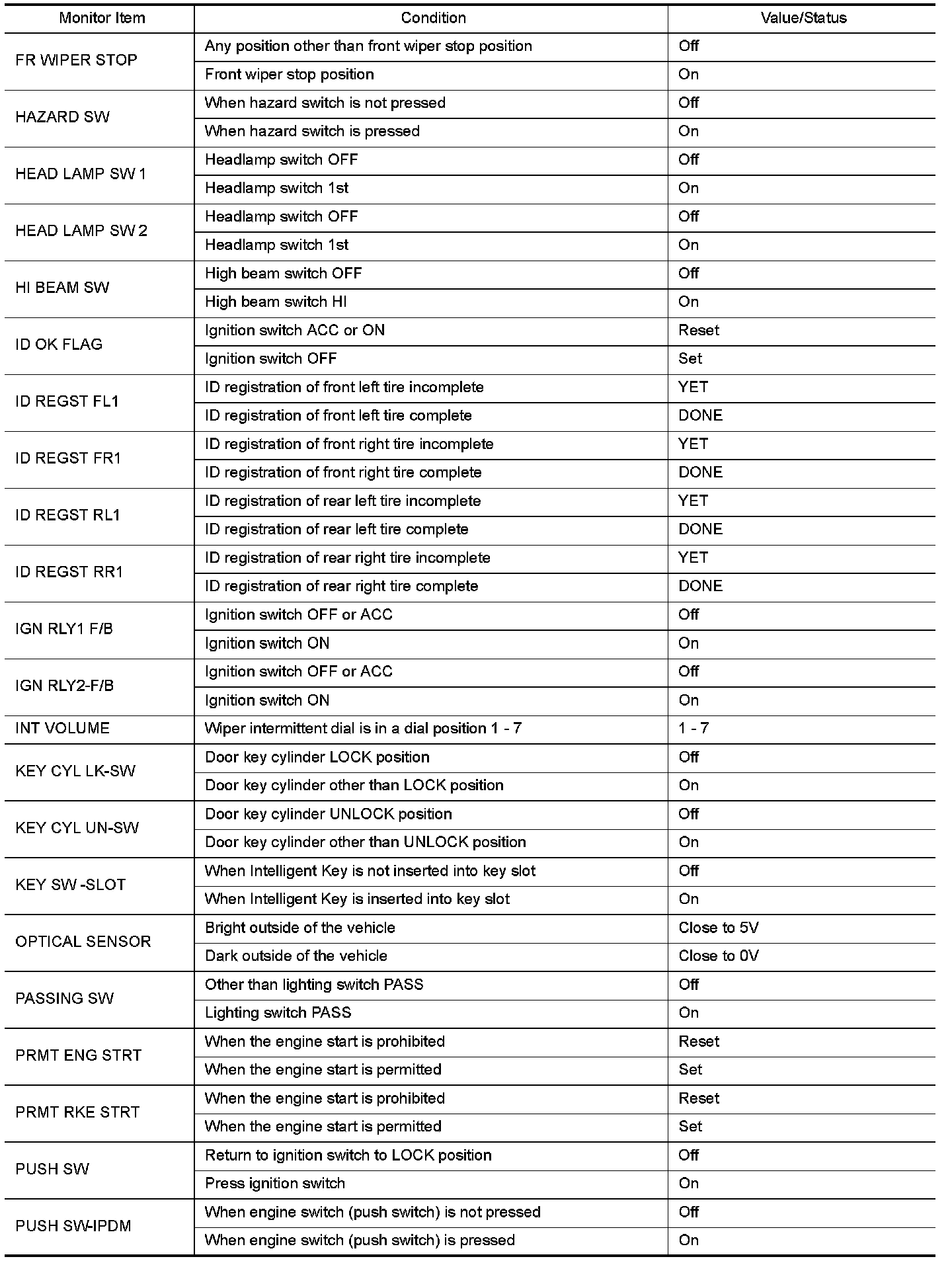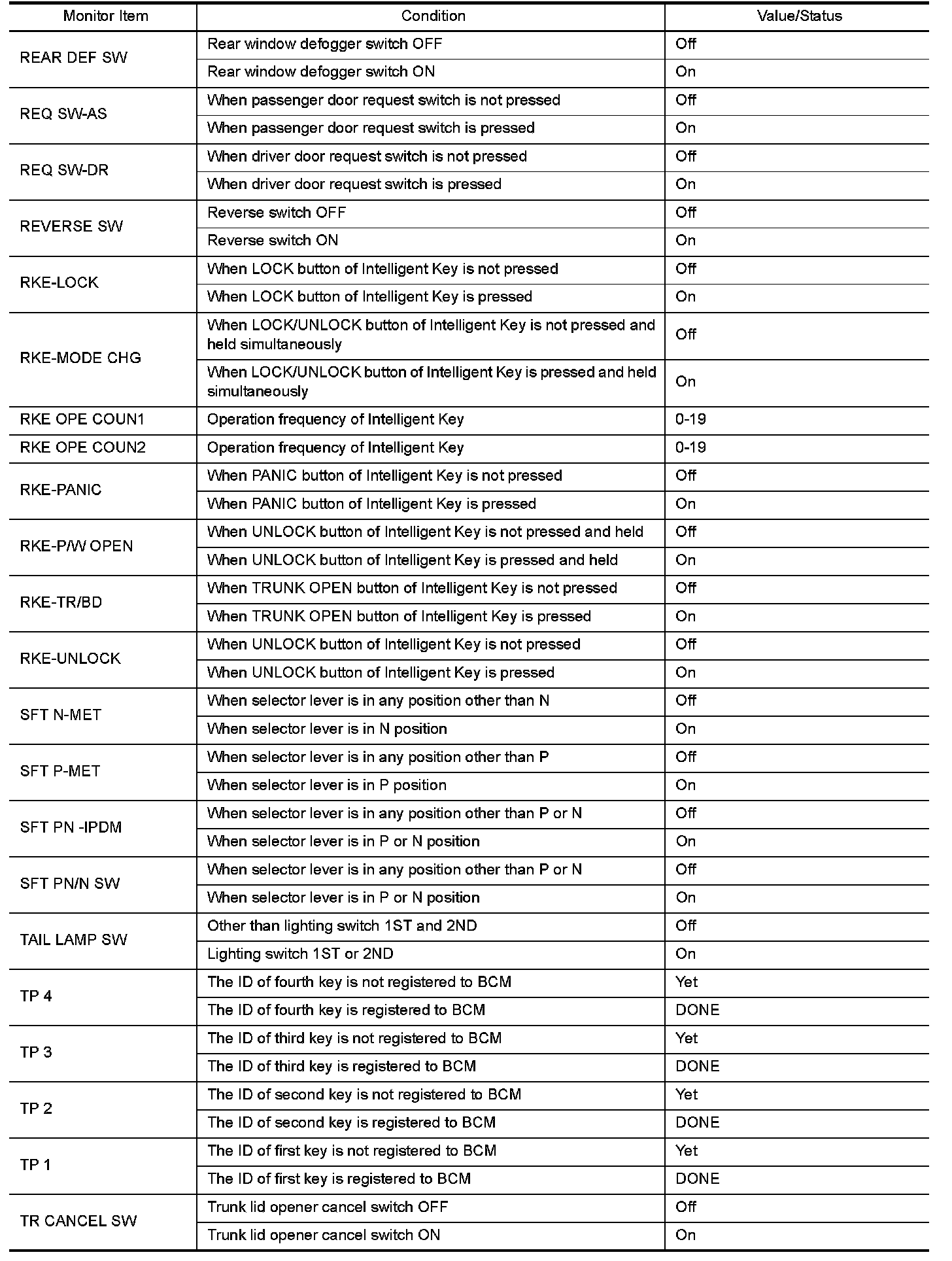 - Check Intelligent Key relative signal strength