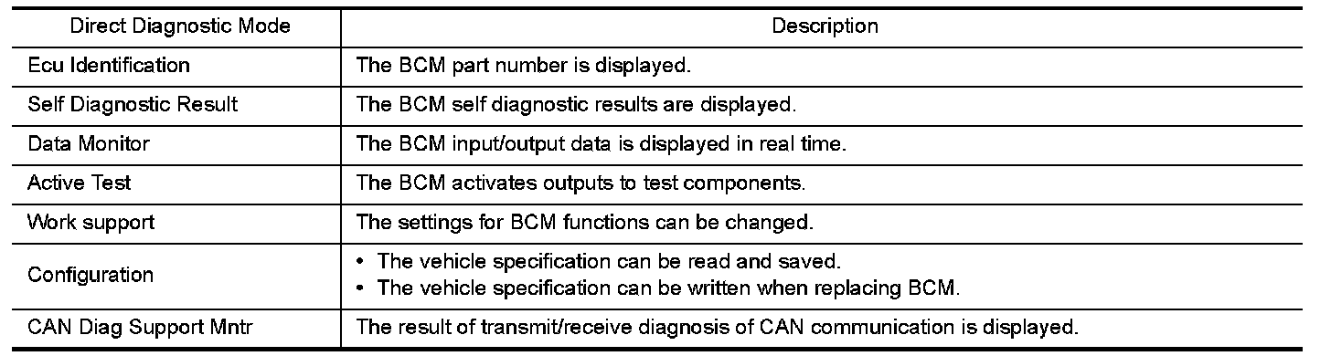 CONSULT performs the following functions via CAN communication with BCM.