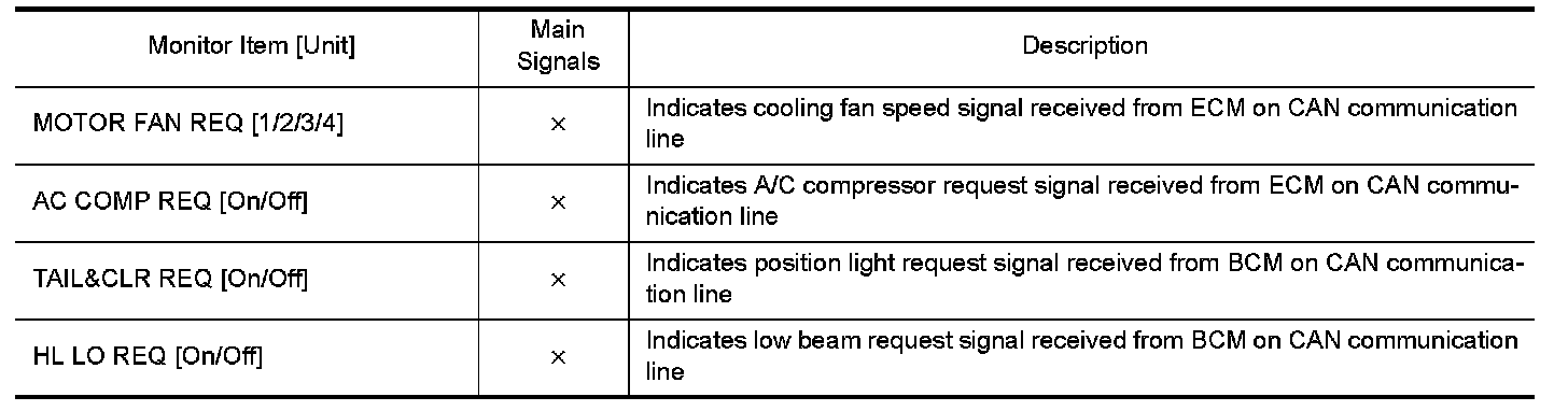 CONSULT performs the following functions via CAN communication with IPDM E/R.