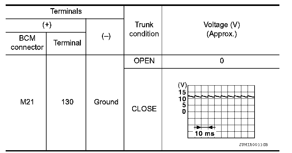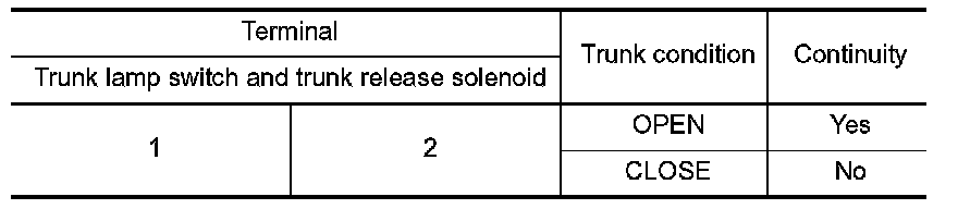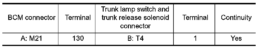 2.Check continuity between BCM connector and trunk lamp switch and trunk release solenoid connector.