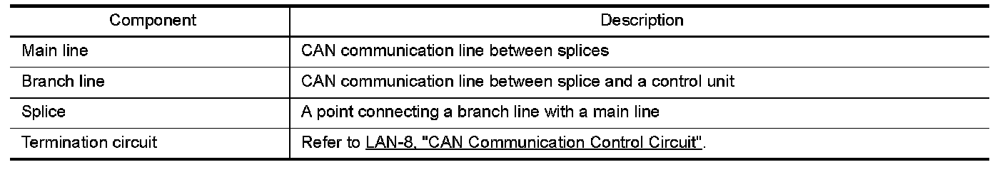 Each control unit passes an electric current to the termination circuits when transmitting CAN communication signal. The termination circuits produce an electrical potential difference between CAN-H and CAN-L. CAN communication system transmits and receives CAN communication signals by the potential difference.