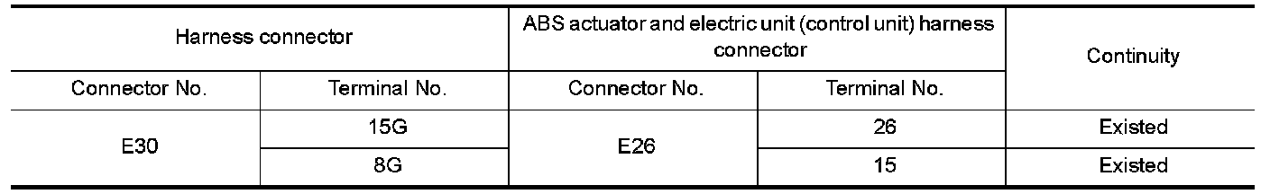 NO- Repair the main line between the harness connector E30 and the ABS actuator and electric unit (control unit).