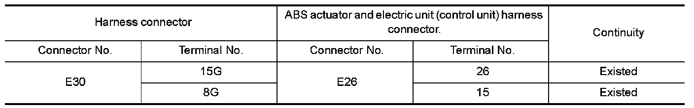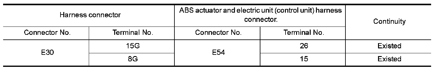 NO- Repair the main line between the harness connector E30 and the ABS actuator and electric unit (control unit).