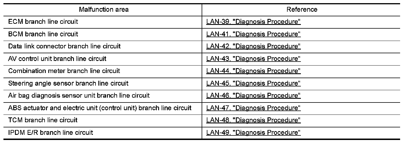 MALFUNCTION AREA CHART