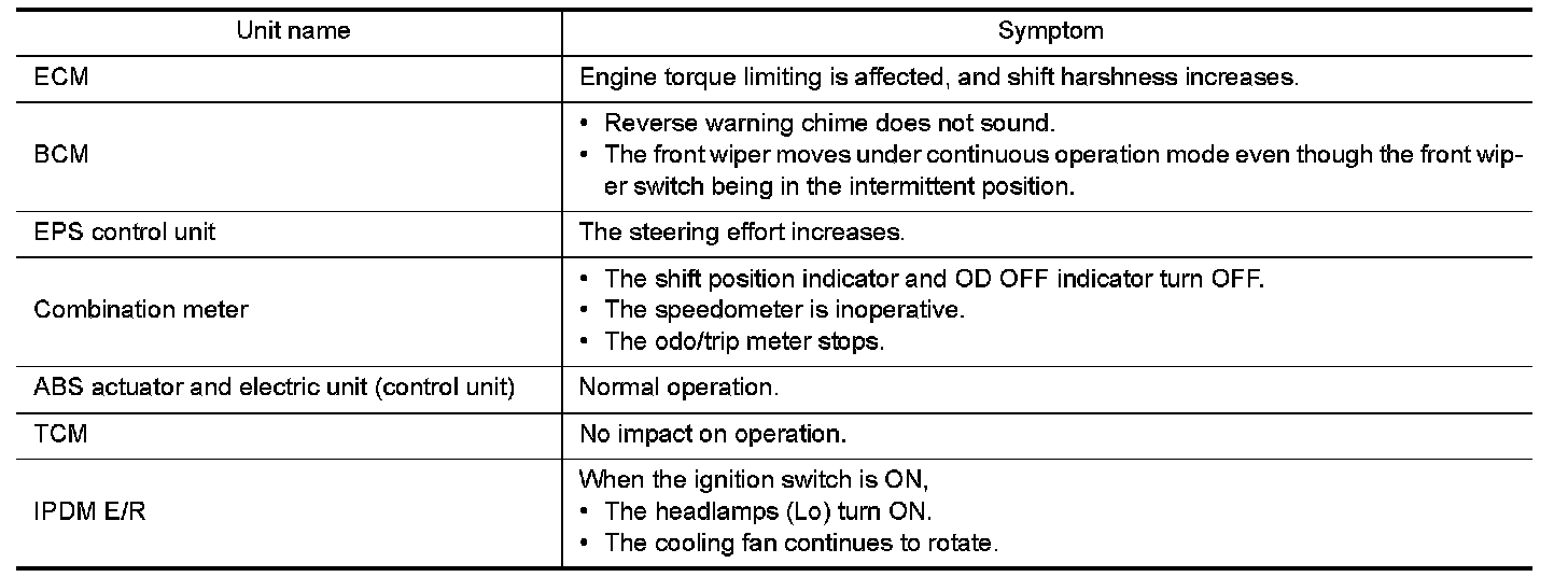 - Each vehicle differs in symptom of each unit under fail-safe mode and CAN communication line wiring.