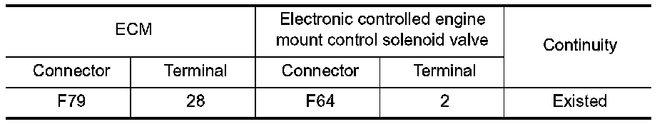 2.Check the continuity between ECM harness connector and electronic controlled engine mount control solenoid valve harness connector.