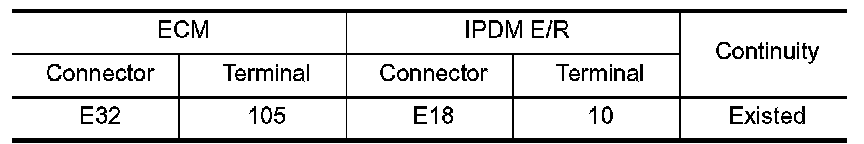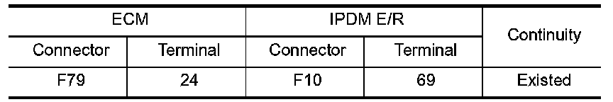 3.Check the continuity between ECM harness connector and IPDM E/R harness connector.