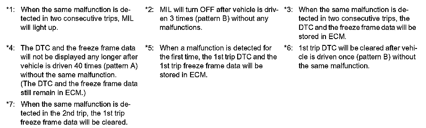 - *2: Clear timing is when the same malfunction is detected in the 2nd trip.
