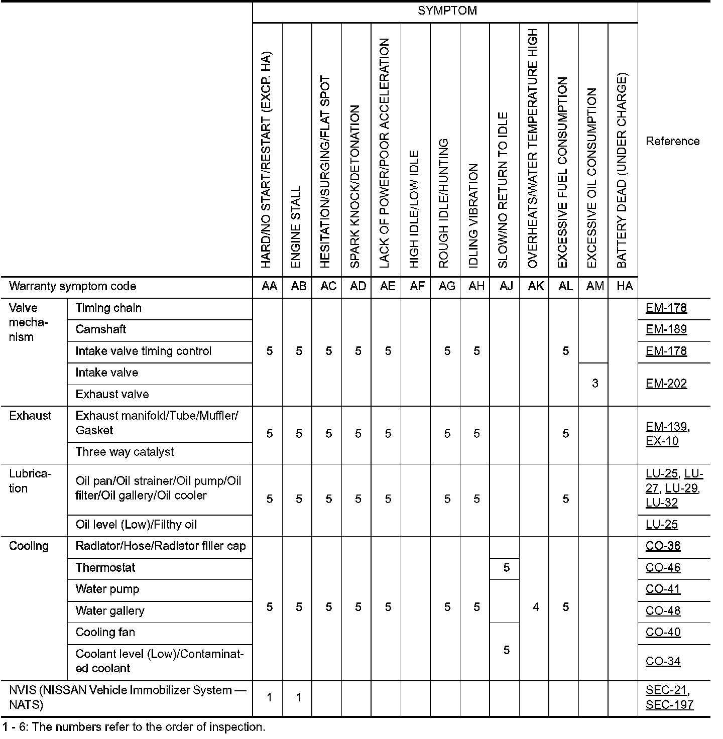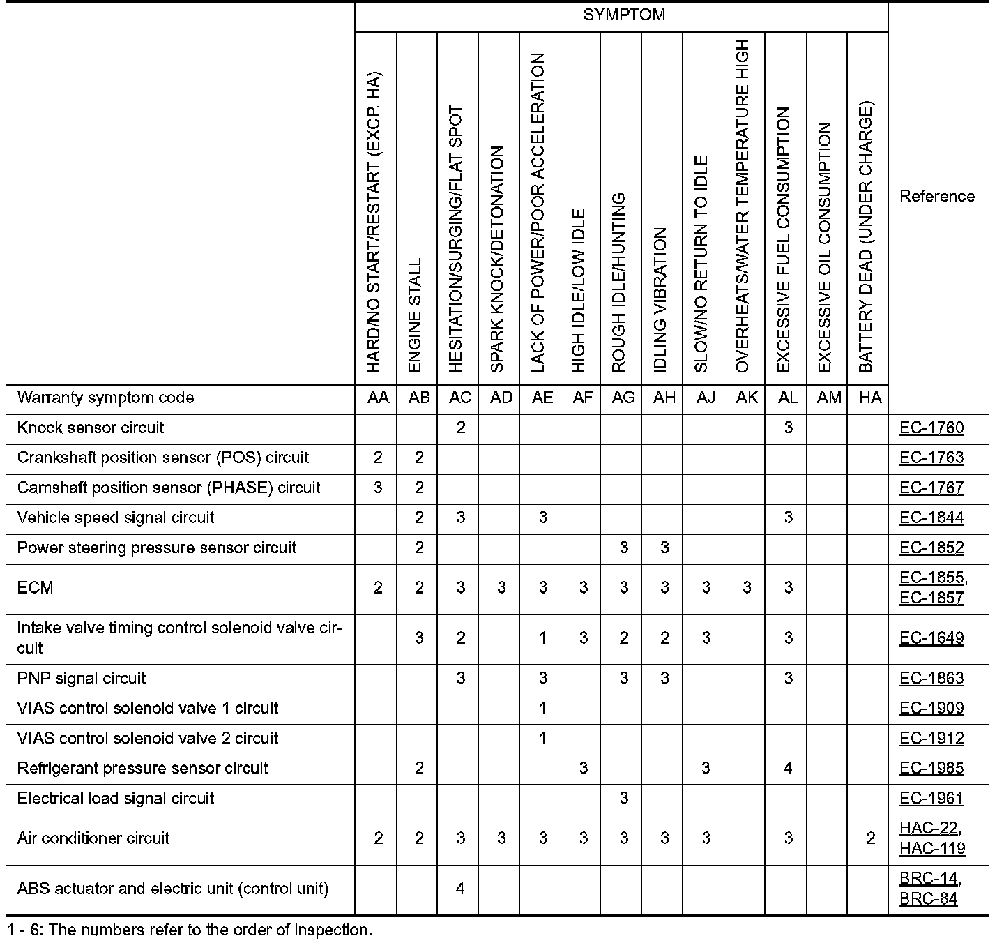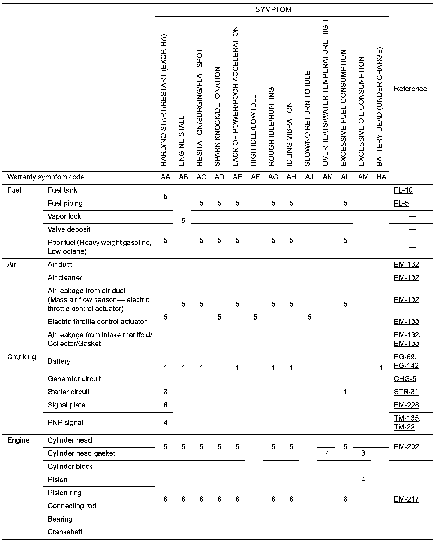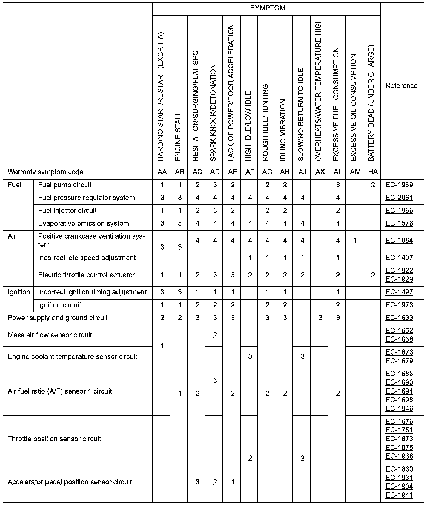 ENGINE CONTROL SYSTEM SYMPTOMS