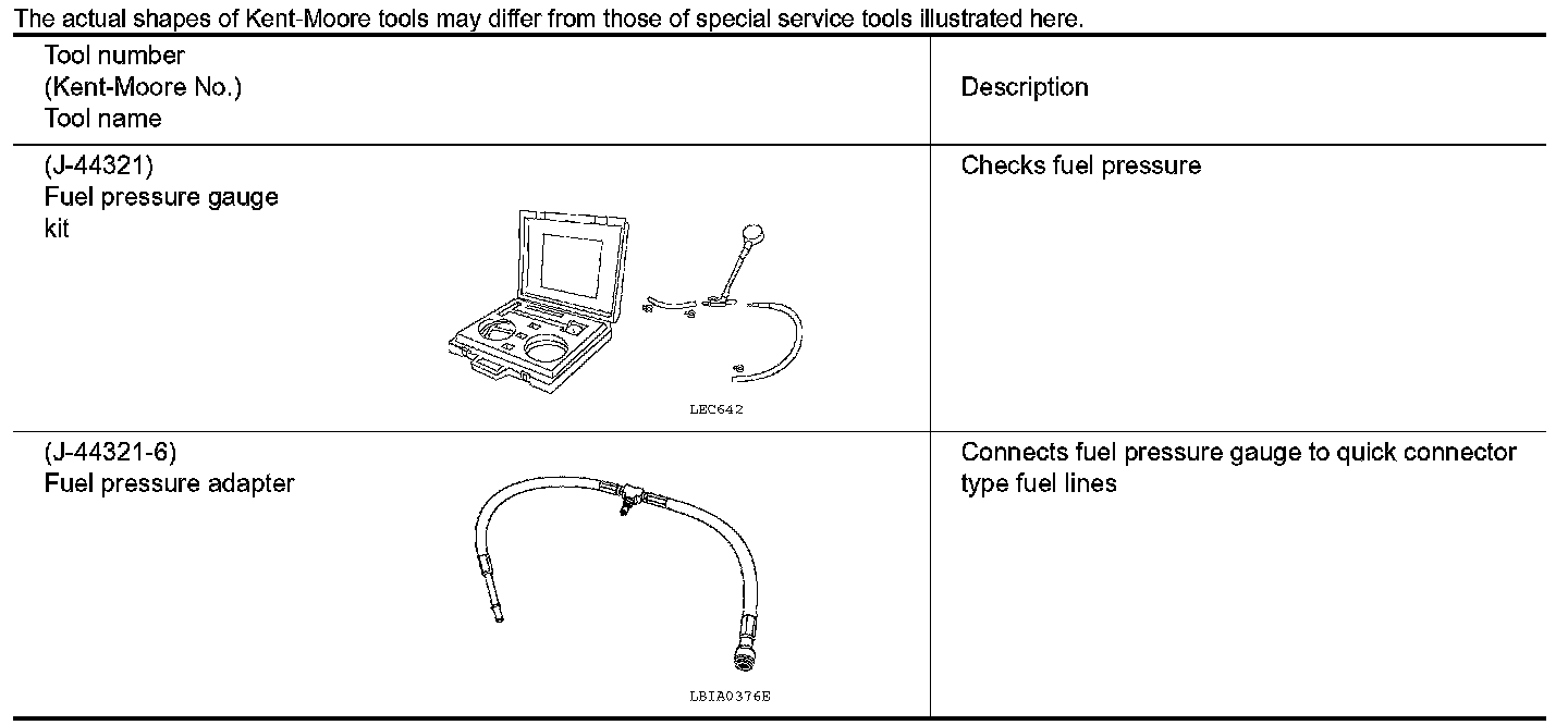 The actual shapes of Kent-Moore tools may differ from those of special service tools illustrated here.
