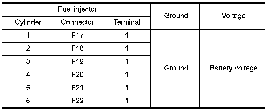 3.Check resistance between fuel injector terminals as per the following.