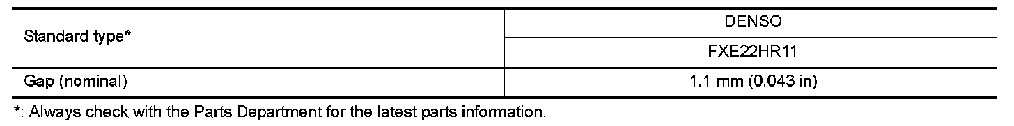 - Checking and adjusting plug gap is not required between change intervals. If the gap is out of specification, replace the spark plug.