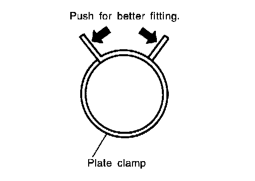 - After installing plate clamps, apply force to them in the direction of the arrow, tightening rubber hose equally all around.