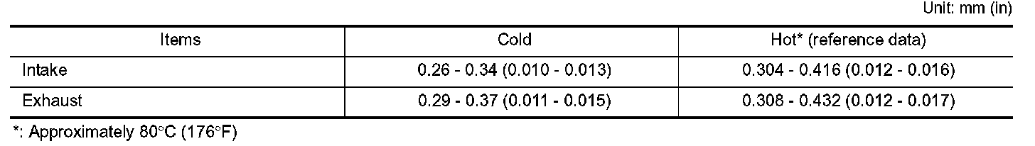 VALVE CLEARANCE