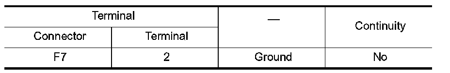 5.Check continuity between generator harness connector F7 terminal 2 and ground.
