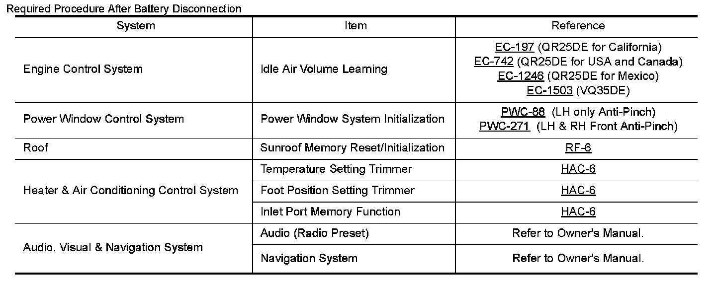 Required Procedure After Battery Disconnection