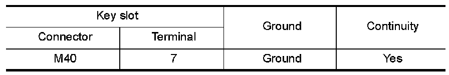 Check continuity between key slot connector and ground.