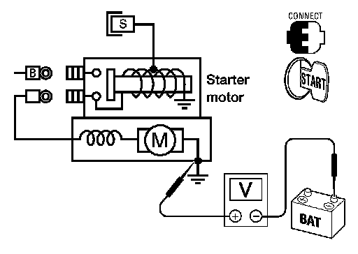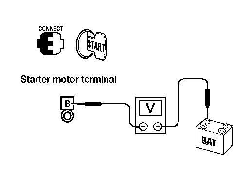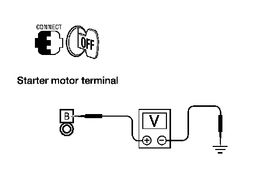 3.Check voltage between starter motor connector F27 terminal B and ground.