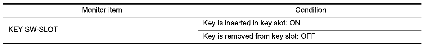 Check KEY SW -SLOT in Data Monitor mode with CONSULT.