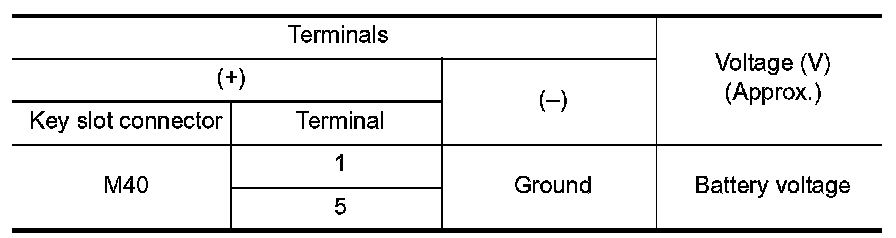 3.Check voltage between key slot connector and ground.