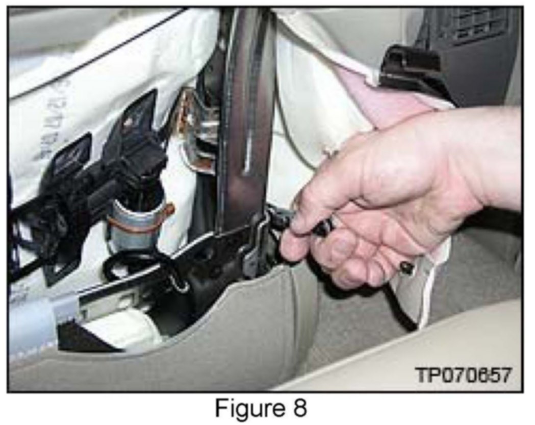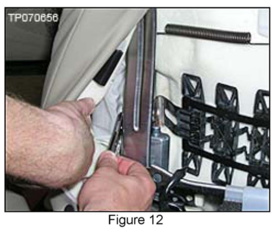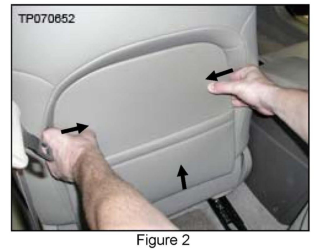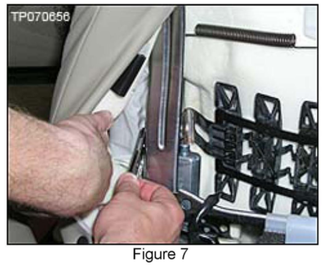 ^ Carefully move the seat trim, seat foam, and side air bag to the left.