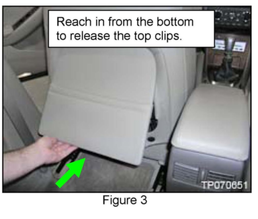d. Reach in from the bottom to release the top clips (see Figures 3 and 4).