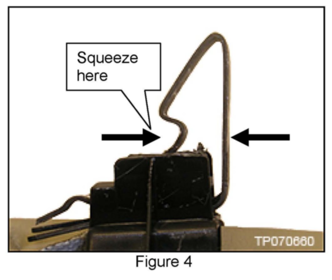 ^ To release the top clips: use needle nose pliers to squeeze the clips at the points shown.