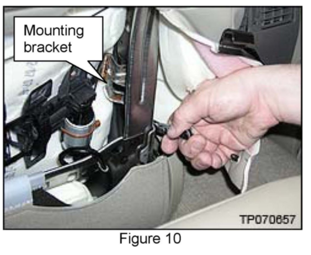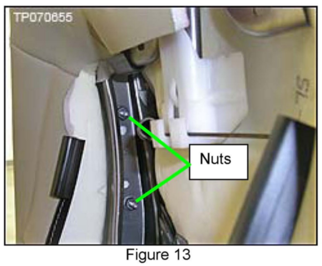 12. Remove the 2 right side lumbar support assembly mounting bolts.