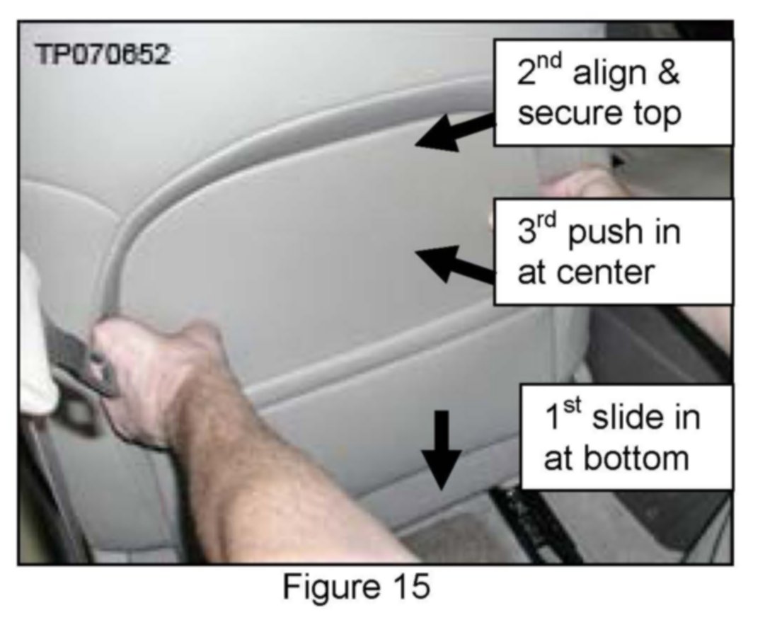 When reinstalling the side air bag, make sure the module is fully inside the white cloth sleeve. Also, make sure the sleeve is smooth and not bunched.