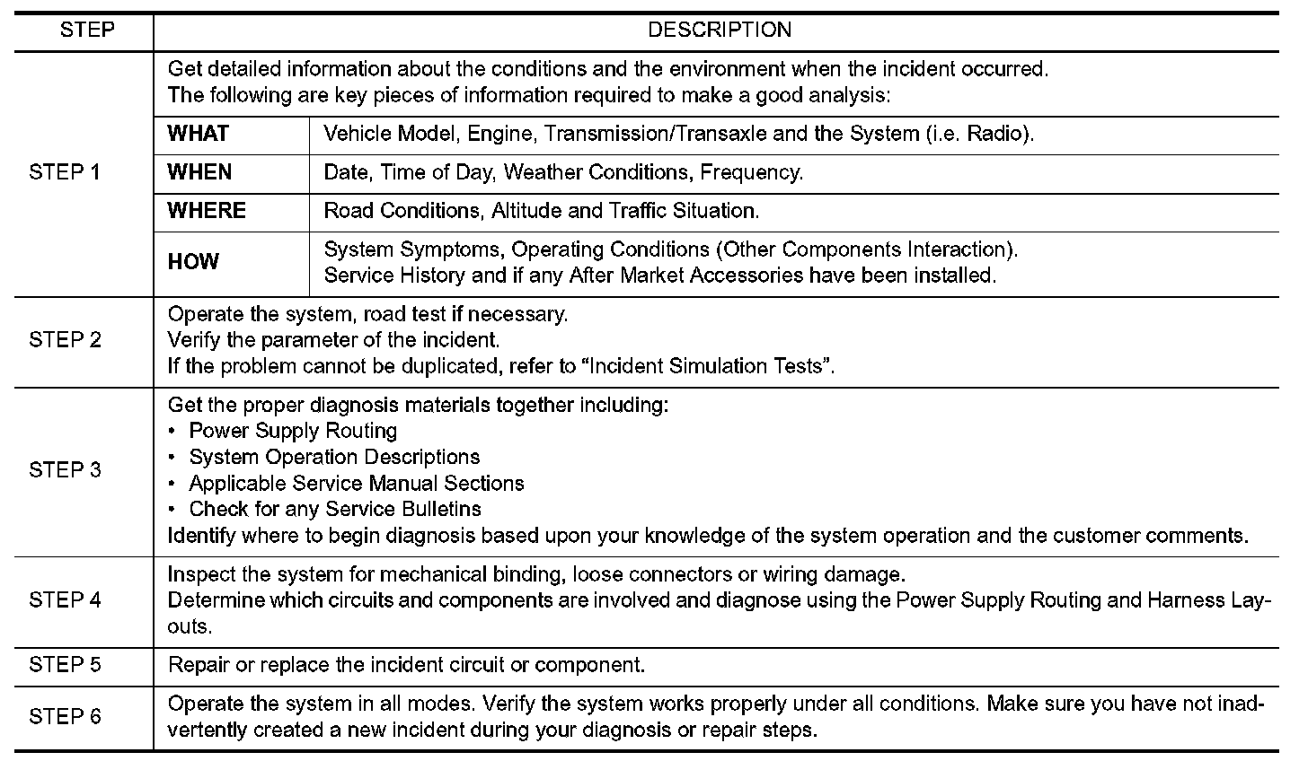 SERVICE INFORMATION FOR ELECTRICAL INCIDENT