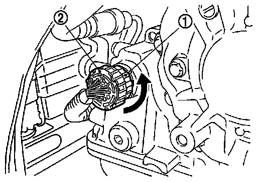 Rotate bayonet ring (1) counterclockwise, pull out CVT unit harness connector (2) and remove it.