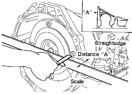 After inserting the torque converter to the CVT, be sure to check distance (A) to ensure it is within specifications.