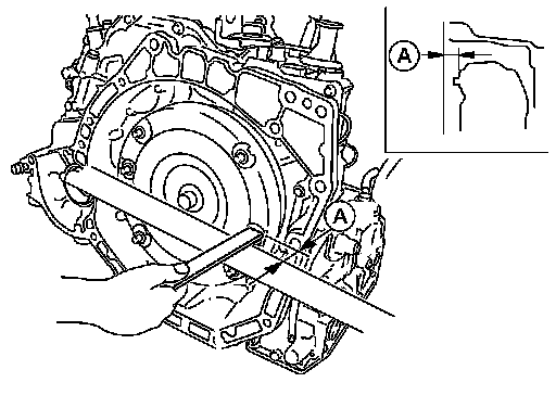 After installing the torque converter to the CVT, be sure to check distance (A) to ensure it is within specifications.