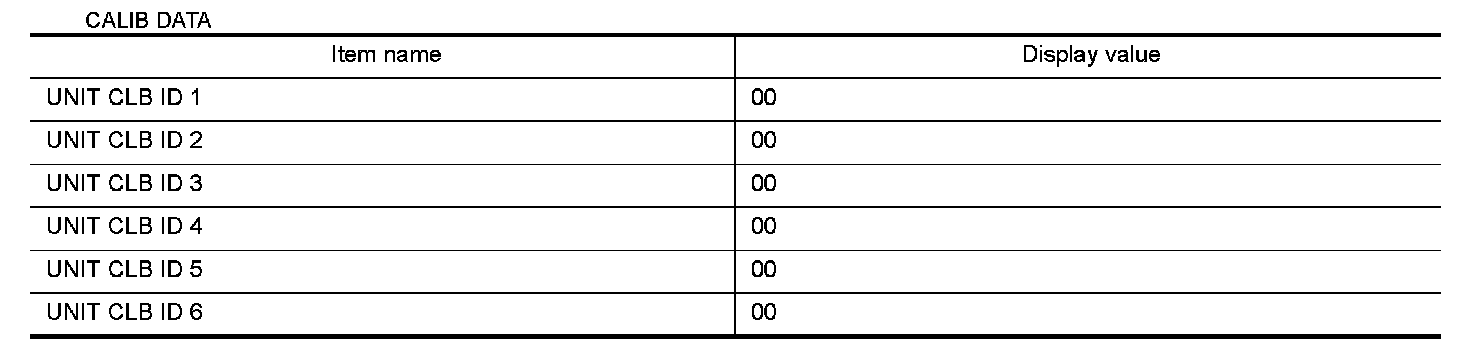 16.Check that the value on "CALIB DATA" in CONSULT is the same as the data listed in the table below.
