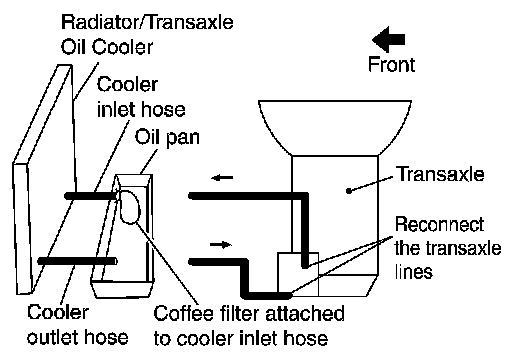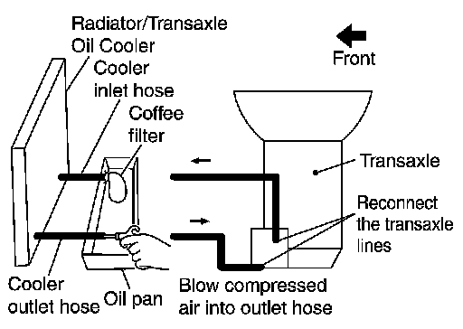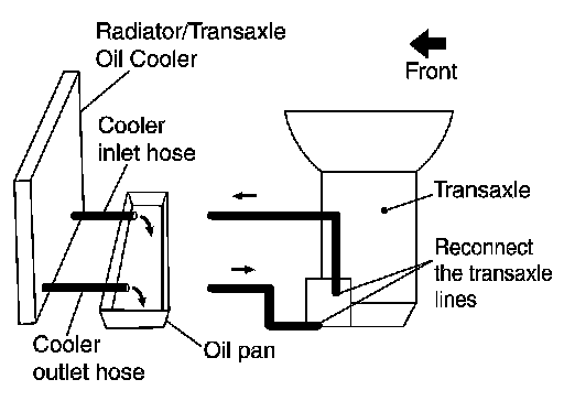 1.Position an oil pan under the transaxle's inlet and outlet cooler hoses.