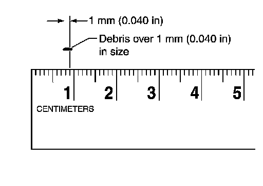 b.If one or more pieces of debris are found that are over 1 mm (0.040 in) in size and/or peeled clutch facing material is found in the coffee filter, the fluid cooler is not serviceable. The radiator/ fluid cooler must be replaced and the inspection procedure is ended.