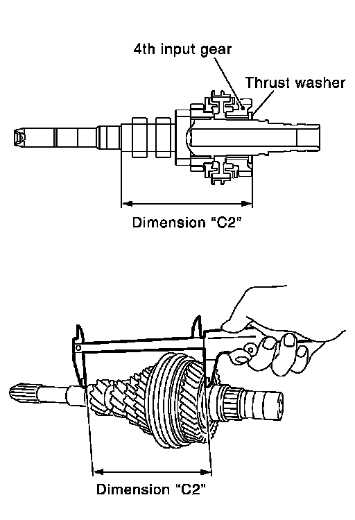 8.Select thrust washer so that dimension (C2) satisfies the standard value below. Then install thrust washer onto input shaft.