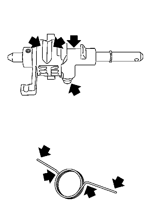 - Check contact surfaces and sliding area for wear, damage, bending, etc. If necessary, replace parts.