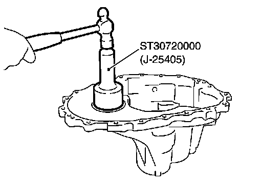 4.Install selected differential side bearing adjusting shim and then install differential side bearing outer race using Tool.