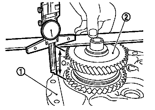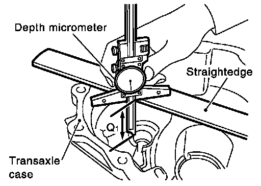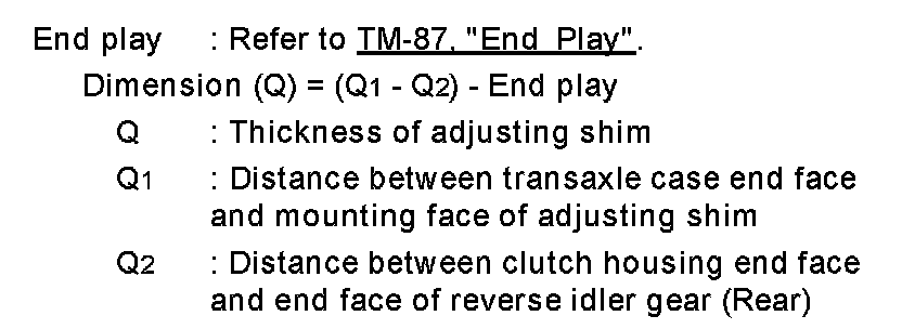 - Calculate dimension (Q) (thickness of adjusting shim) using the following procedure to satisfy specification of end play for reverse idler gear.