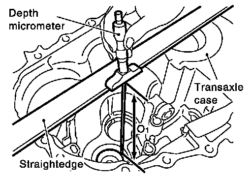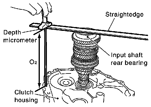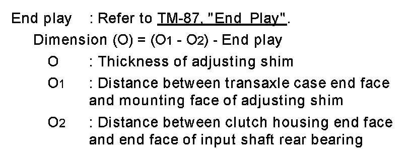 - Calculate dimension (O) (thickness of adjusting shim) using the following procedure to satisfy specification of end play for input shaft rear bearing.