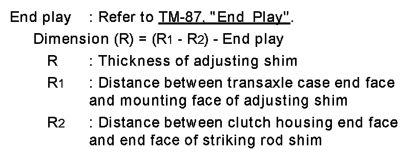 - Calculate dimension (R) (thickness of adjusting shim) using the following procedure to satisfy specification of end play for striking rod.