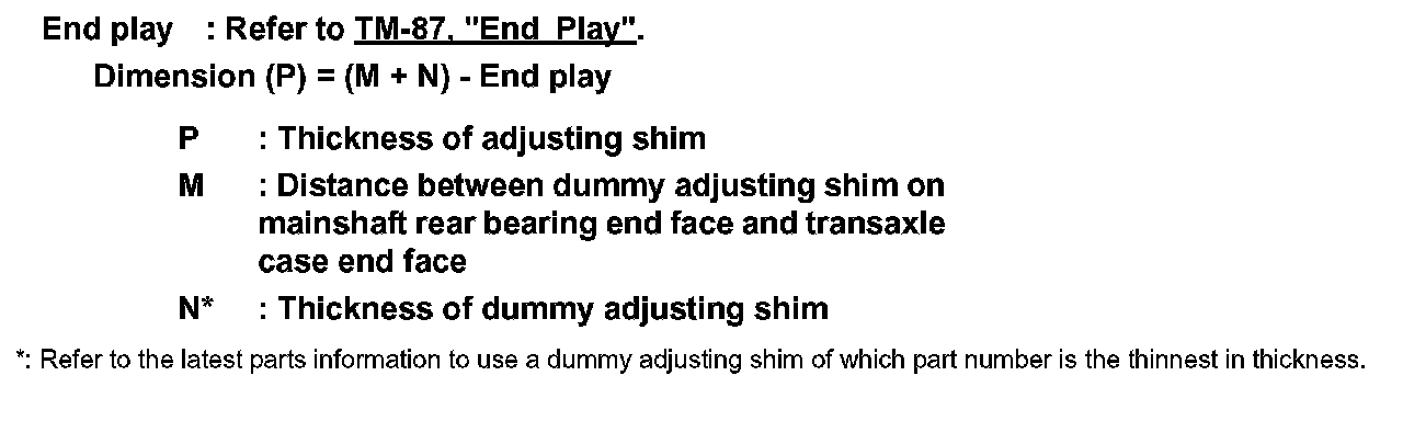 - Calculate dimension (P) (thickness of adjusting shim) using the following procedure to satisfy specification of end play for mainshaft rear bearing.