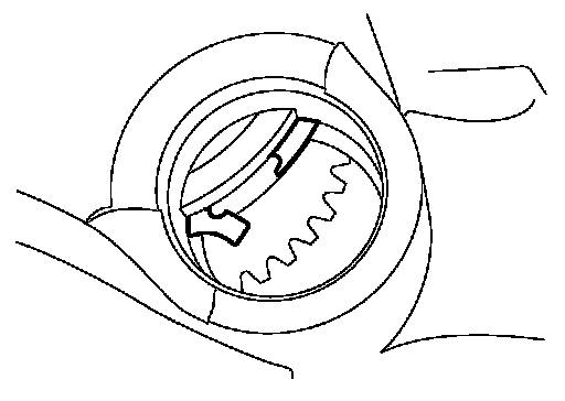 e.Accessing from the bore plug hole, expand snap ring at mainshaft rear bearing so that the ring catches the periphery of mainshaft rear bearing.