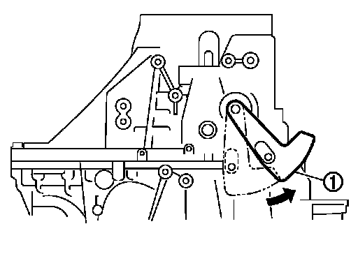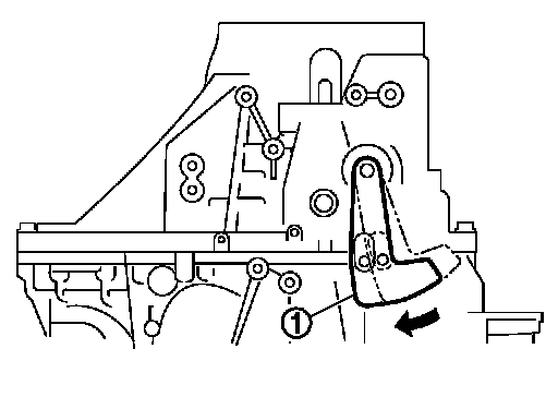 d.While rotating shifter lever A (1) in the direction of the arrow shown, assemble transaxle case to clutch housing.